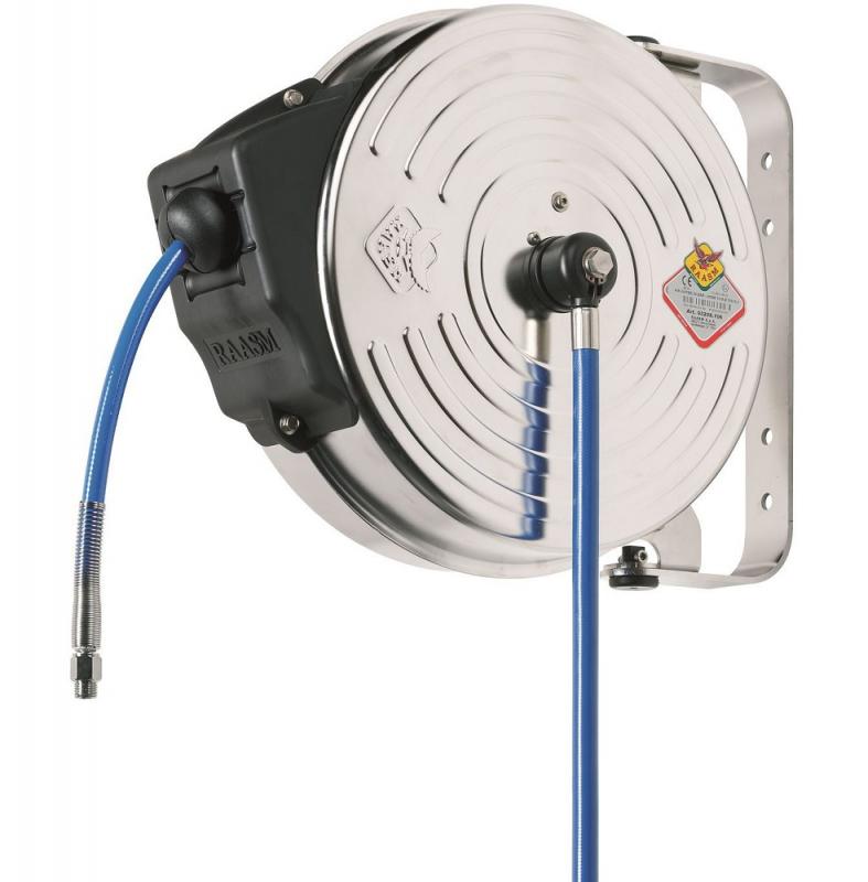 20 bar - Luft/vatten - Slangupprullare i kapslat utförande med fjäderretur, slangupprullaren är gjord helt i rostfritt stål.