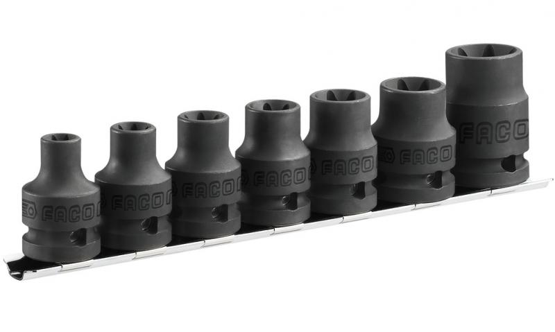 Facom 1/2" kraft E-torxhylssats korta (E10-E24)