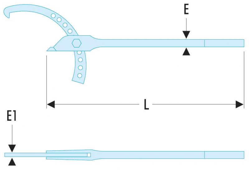 Haknyckel med 11 st storleksinställning, smidd och härdad till 44Hrc, satin chrome finish.