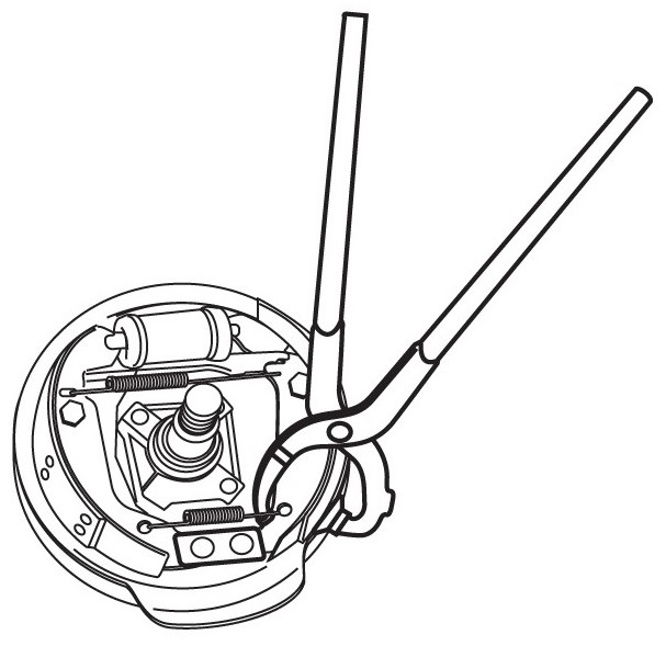 Bromsfjäderverktyg som gör jobbet att haka på fjädrarna till bromsbackarna lite enklare.