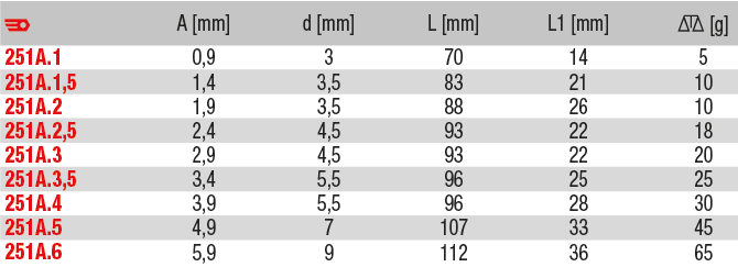 Facom 251A.JT6 pinndornssats 1,0-6,0mm (9st)