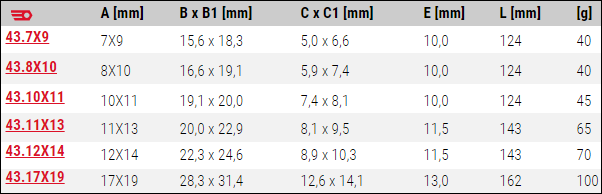 Facom 43 - Öppna ringnycklar 6-kant 7-19mm