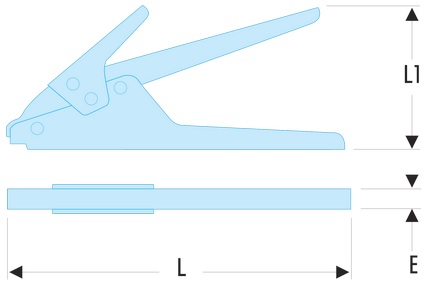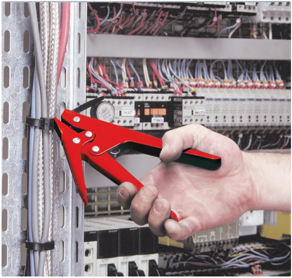 Tång för hård och snabb åtdragning av plastbuntband med bredd 2.4 till 9.0 mm, manuell avklippning med som görs med de minsta handtaget längst fram.