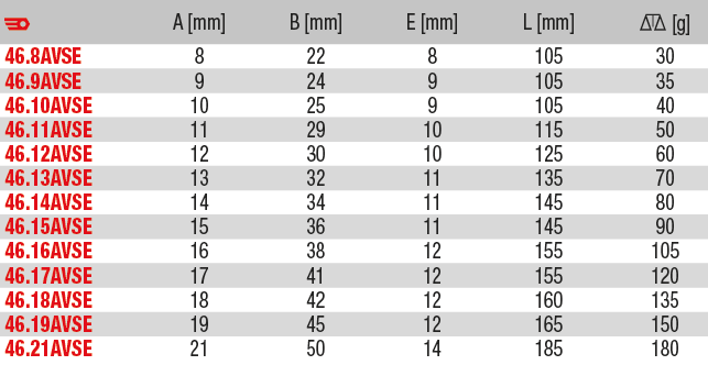 1000V isolerade u-nycklar som finns i storlekarna 8 till 21mm.