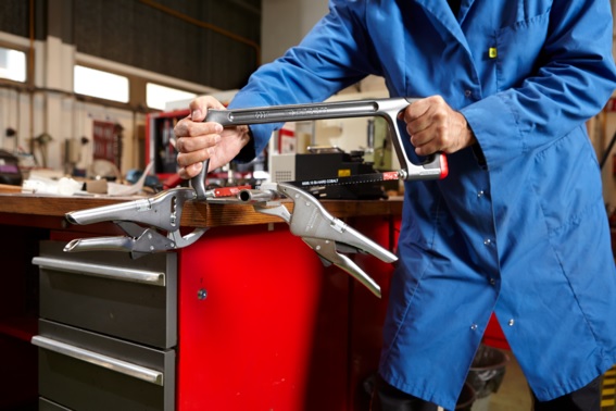 Svetstång med mjuk och smidig upplåsning, enhandsmanövrering, räfflad greppyta för maximalt grepp.