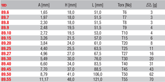 Facom 89 L-nyckel torx, kort modell, T6-T55
