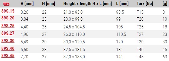 Innehåller följande storlekar: T10 - T15 - T20 - T25 - T27 - T30 - T40 - T45