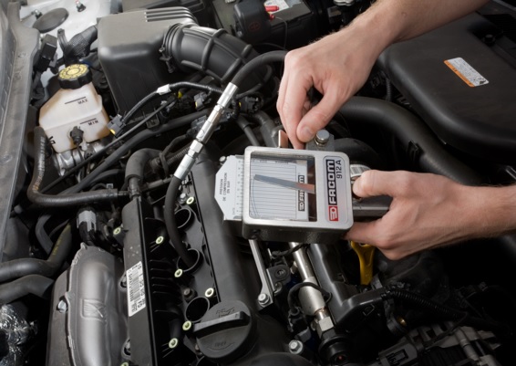 Skrivande kompressionsmätare för bensinmotorer, denna modellen har ett mätintervall på 3-18 bar och skrivarkort upp till 12-cylindrar.