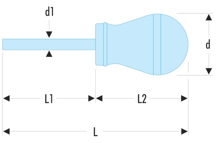Tvåkomponentshandtag, rund extra kort klinga i "carbon silicium" som båda tåler mycket hårda påfrestningar, nötning och kemikalier.