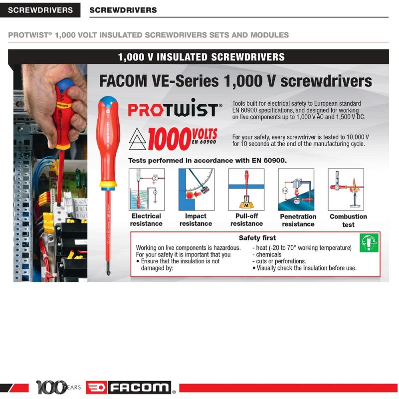 - VDE-mejslar som är individuellt testade (10,000V i 10 sekunder) i slutskedet av produktionen.