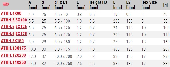 Denna sats innehåller följande storlekar: 5,5x100 - 6,5x125 - 8x150 - 10x175 - 12x200mm