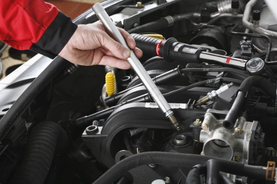 Tändstiftshylsa med gummigrepp som griper tag i tändstiftet, 3/8" fattning och räfflad högst upp för ett bättre grepp med fingrarna.