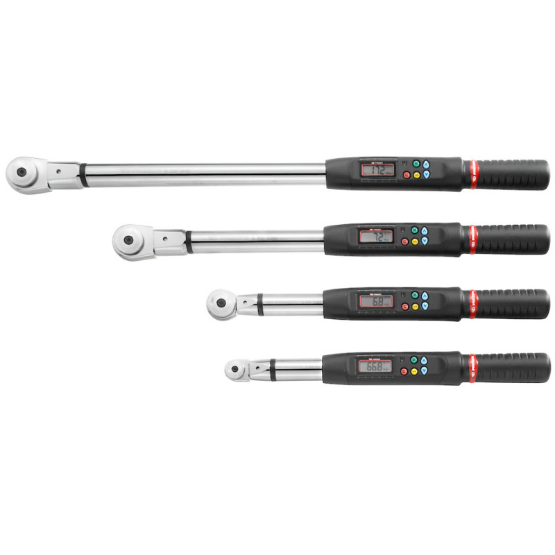 Digital momentnyckel, låsbar knappsats, förinställning av 9 moment och/eller vinkelvärden, minnesfunktion 250st värde.