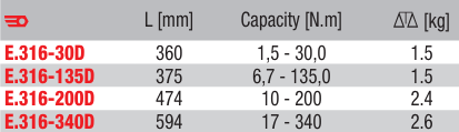 - Vridmoment: ± 2 % mellan 20 % och 100 % av kapaciteten