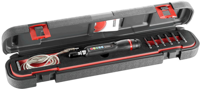 Digital momentmejsel i hög kvalité med minnesfunktion, USB-kabel ingår för överföring av data, drivs av 1 st AAA-batteri.