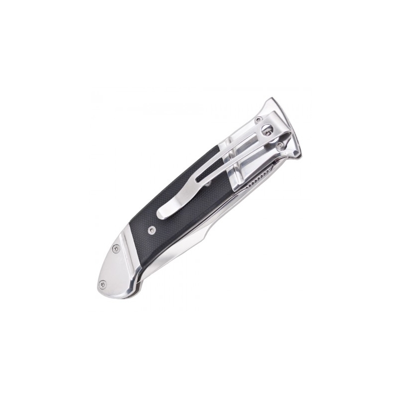Det rostfria stålet och handtagets utformning ge denna modell ett klassiskt utseende avsedd att användas varje dag. Bladet är lätt att fälla ut med en hand (både höger och vänster). Linerlock låsmekanism och rostfritt polerat blad i 7CR17MOV stål härdat till 52-59 HRC. Bältesclip i rostfritt stål. Totallängd utfälld: 19,8 cm Ihopfälld: 11,4 cm. Bladlängd: 8,4 cm. SB-packad.