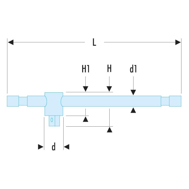 T-handtag med 3/4" fattning och skjutbart huvud, utförande i bright chrome-finish.