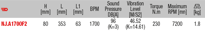 Max-moment. 230Nm - Kraftfull vinklad slående mutterdragare med ergonomiskt isolerande handtag, gummibumpers runt maskinen för att minska slitage.