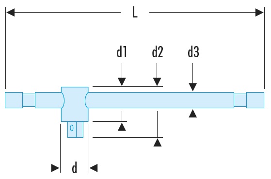 T-handtag med 1/2" fattning och skjutbart huvud, utförande i bright chrome-finish.
