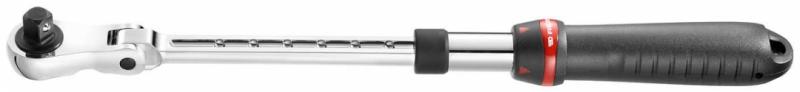 Utdragbart spärrskaft i 8-steg, flexibelt huvud, 72-tandad spärrfunktion och ett tätslutande kompakt huvud för minimalt slitage och service.