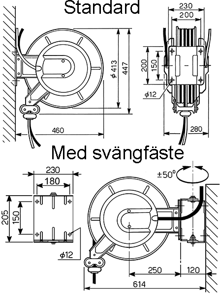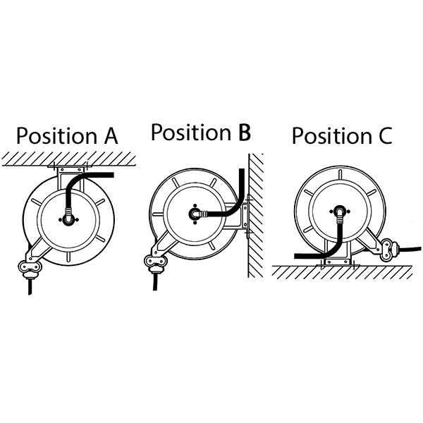 - Slangstyrarmarna kan fixeras i tre olika lägen beroende på hur slangvindan installeras.