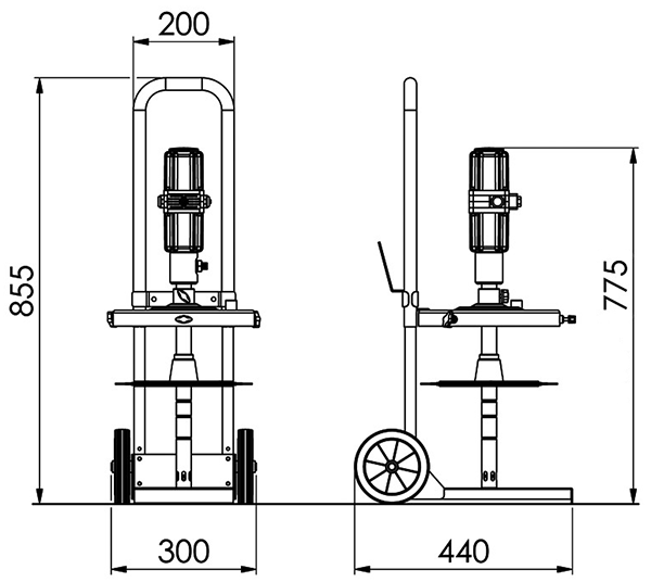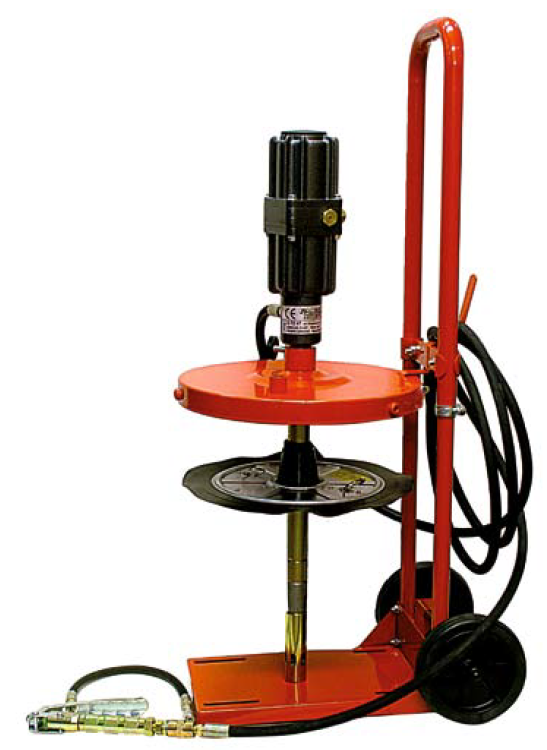 Inkl. pump, fatlock, följelock, smörjhandtag, svivel, smörjslang och vagn.