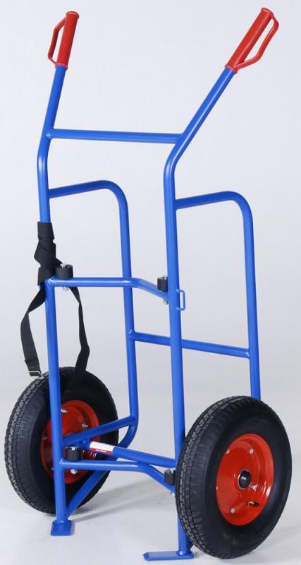 Stark och robust fatkärra, levereras med spännband för säker fathantering.