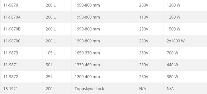 Uppvärmningslängd ca. 24h (200 Liter vatten från +15ºC till +80ºC med en 1200 W fatvärmare).