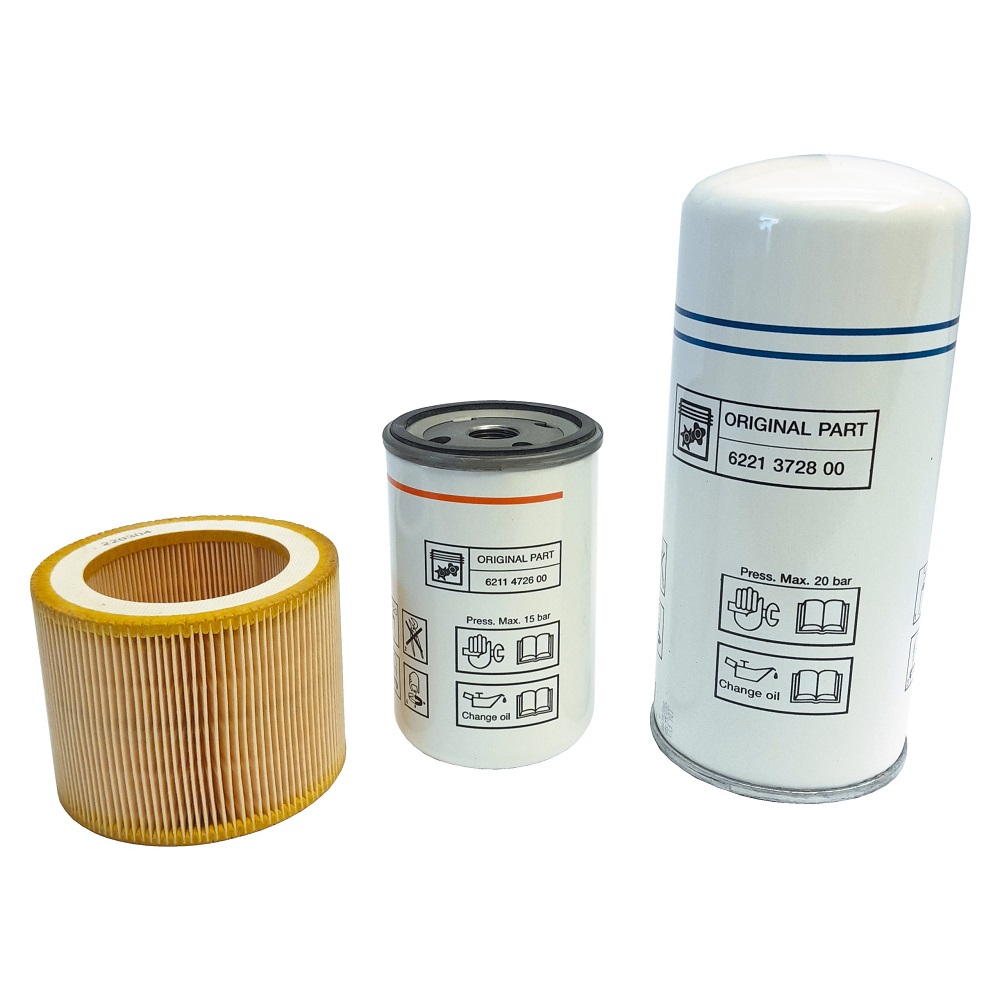 OEM filtersats (luftfilter/oljefilter/separatorfilter) från Fiac, passar New Silver 15hk och 20hk.