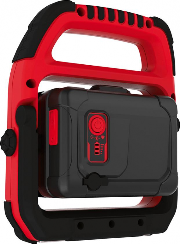Arbetsbelysning med aluminiumhus, powerbank, justerbart/vridbart lamphus, dimbar ljusstyrka och kraftig magnet i ramen.