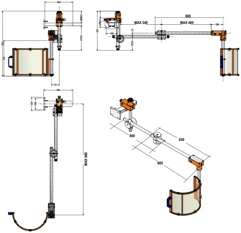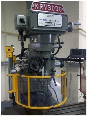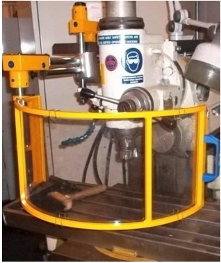 Frässkydd för metallfräsar, ramen av stål och siktskiva av polykarbonat (höjd 240mm som standard) och 2st mikrobrytare.