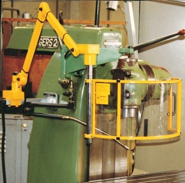 Frässkydd för metallfräsar, ramen av stål och siktskiva av polykarbonat (höjd 240mm som standard) och 2 st mikrobrytare.