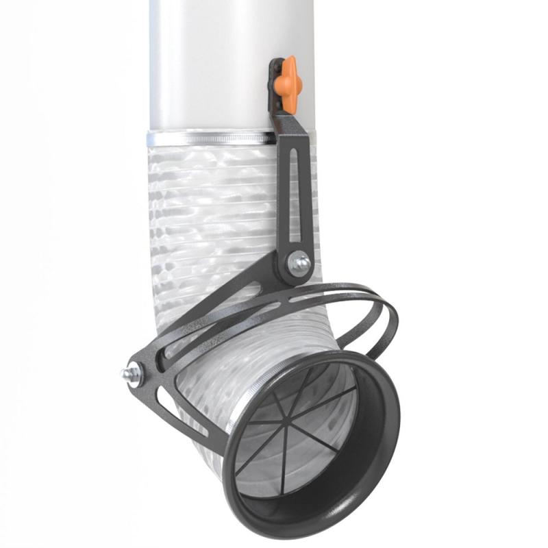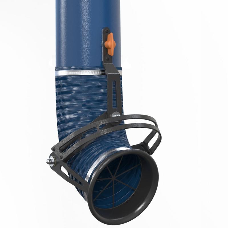 Levereras som standard delmonterad med svårantändlig PVC-slang samt väggfäste.
