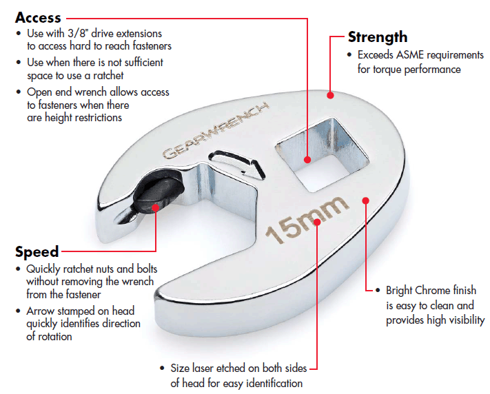 GearWrench har tagit fram en kråkfot med spärrfunktion och 3/8" fattning.