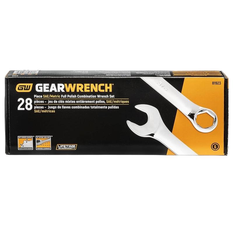 Gearwrench PU-nycklar 15° vinklat ringhuvud och 6-kants fattning, "polished chrome" utförande.