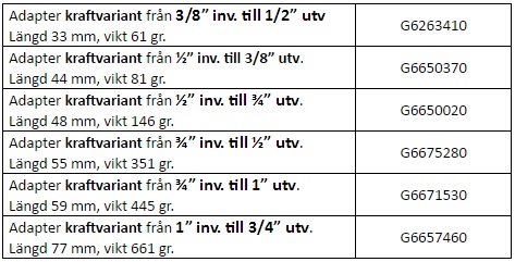 Gedore kraftadapter för att förminska eller förstora fyrkantsanslutningen.