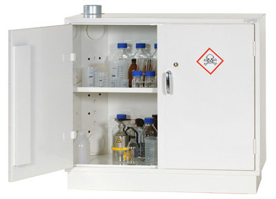 Skåpen kan också utrustas med ett bottentråg då man förvarar större dunkar.