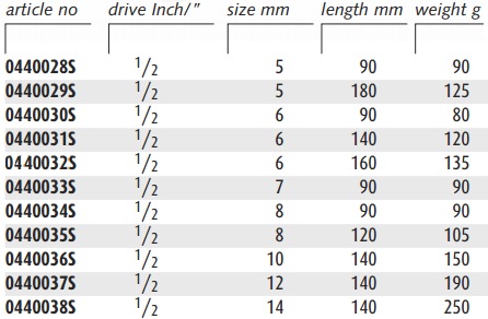 Endres gnistfri lång insexhylsa 1/2" 5-14mm