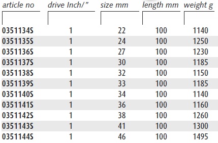 Endres gnistfria 6-kant 1" långa krafthylsor 22-46mm