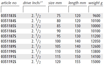 Endres gnistfri 2'1/2" krafthylsa 6pt 75-120mm jumbo