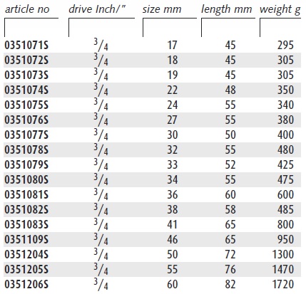 Endres gnistfri 3/4" krafthylsa 6pt 17-60mm