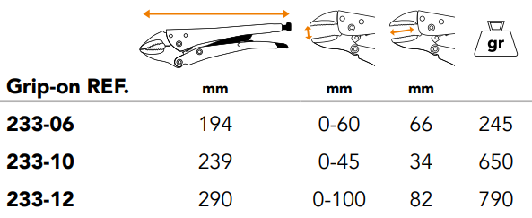 OBS! Notera att storlek 10" har mindre käkdjup än både 6" och 12"
