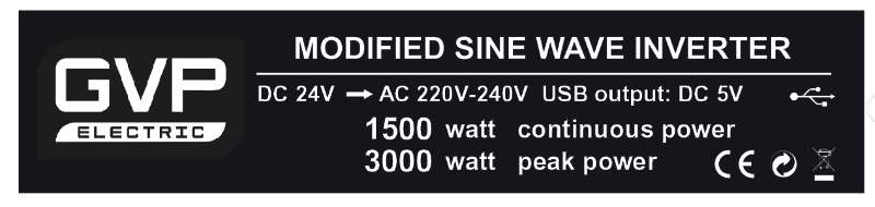 GVP Inverter/omformare 24V till 230V 1500W modifierad sinus