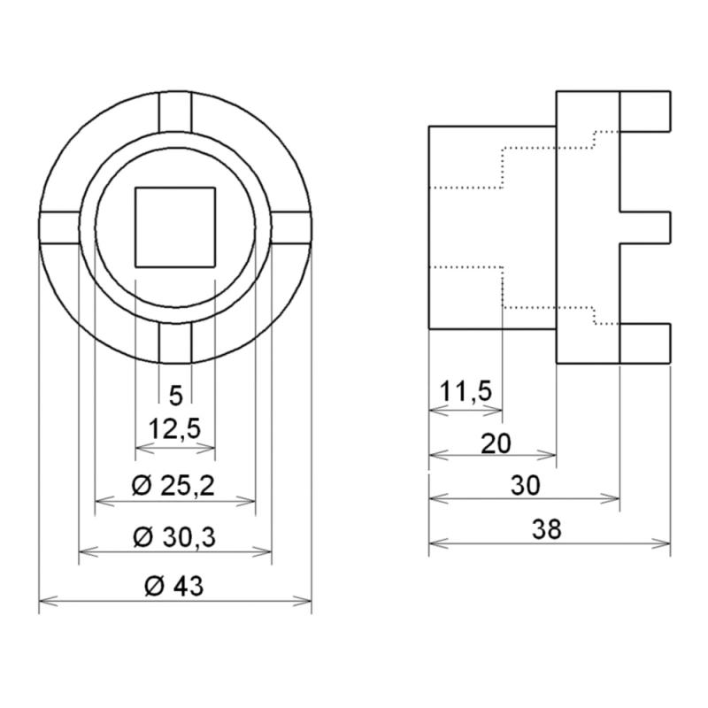 Hakmutterhylsa (km-hylsa) som passar många Suzuki-modeller, bland annat SV 650/1000, DL 650/1000, GSX-R 750/1000/1100.