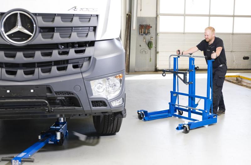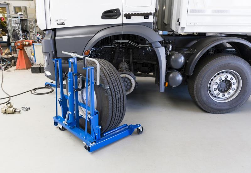 Hydraulisk hjullyftare till varubilar, lastbilar och bussar. Flexibel och ergonomisk hjullyftare för byte av hjul och bromssatser.