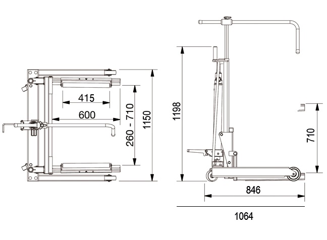 - Sidledes glidande lyftarmar för hjulstorlekar från Ø 270 till 1300 mm.
