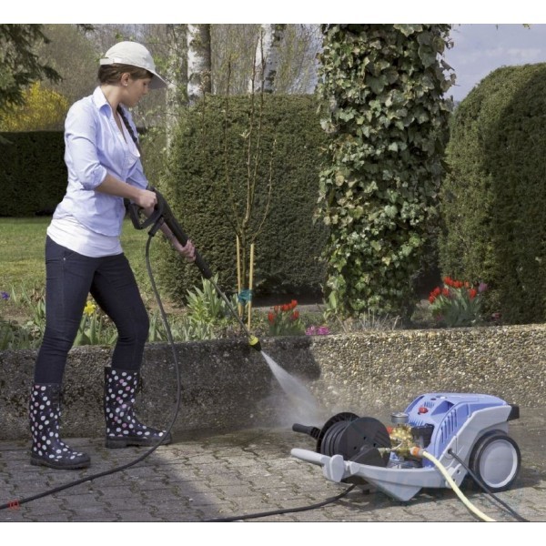 Kompakt högtryckstvätt med lång livslängd. Ventilhus i mässing och keramiskt belagda kolvar. Komplett med 10 meter högtrycksslang. Utrustad med Easy start för mindre belastning på säkringen.
