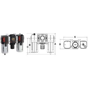 Komplett luftstation med filter, regulator, dimsmörjare och medföljande väggfästen.