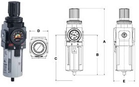 Filterregulatorer eller "piggybacks," en kombination av både filter och regulator, de är kompakta och mest effektiva när utrymmet är trångt.