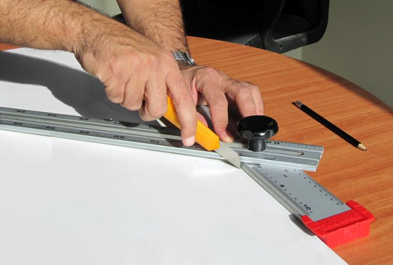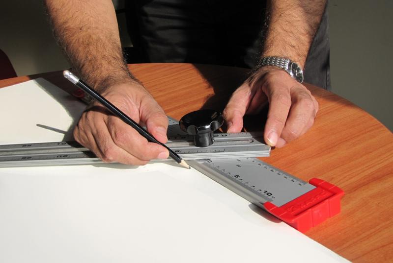 Justerbar robust gipsvinkel i anodiserad aluminium, skyddsändar av ABS, extra stark låsskruv.